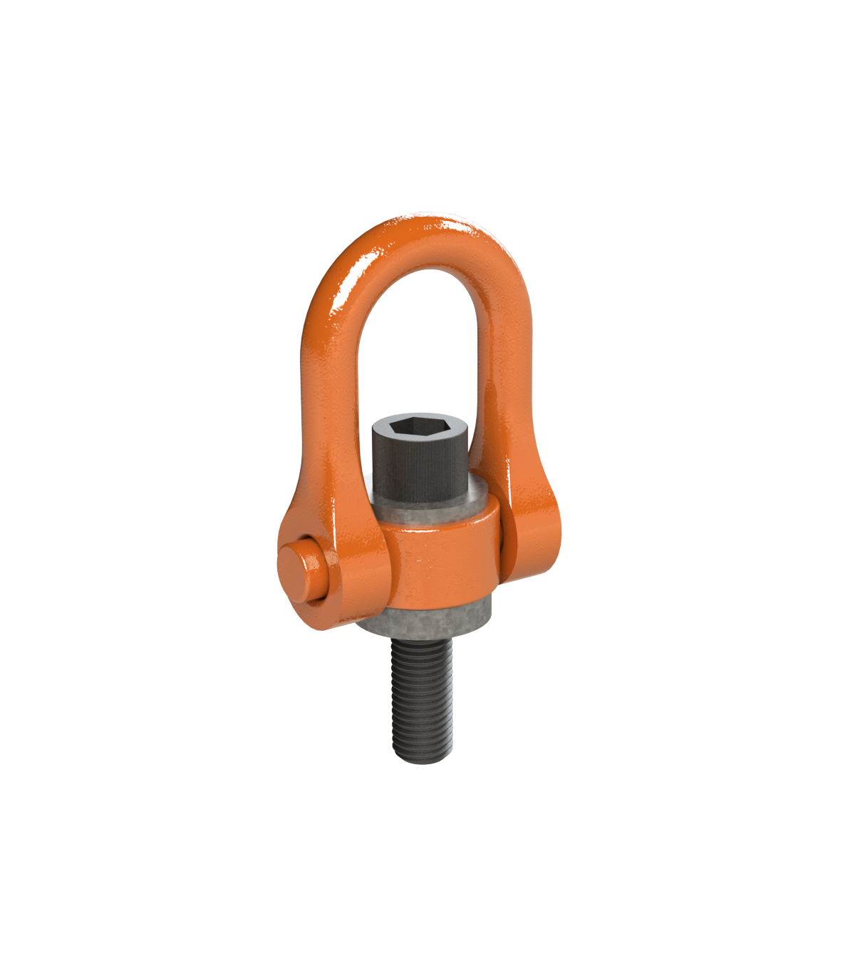 Cuerpo de acero de aleación mecanizado en CNC. Eslabón de acero de aleación formado en caliente, templado y revenido. Buje endurecido. Puede rotar en 360° y pivotear en 180°.