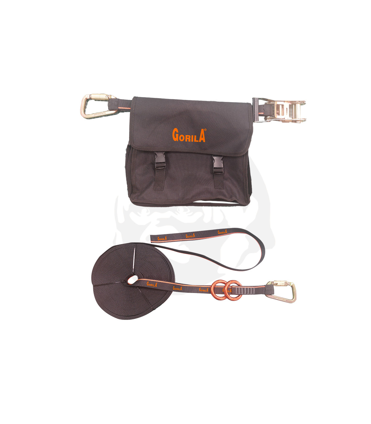 Línea de vida en cinta de poliéster de 35mm con unión al anclaje con mosquetón, esta equipada con un ratchet que permite regular la longitud y tensarla fácilmente. Debe usar complementariamente un arnés anti caída de cuerpo completo y equipo de amarre. Cuenta con un bolso hermético para su almacenaje y traslado.