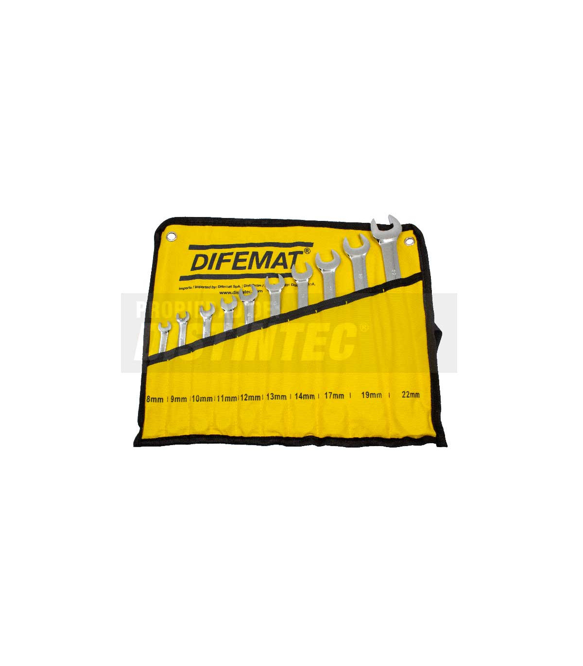 El juego de llaves punta - corona Difemat es fabricado en acero aleado; cromo-vanadio y tratado térmicamente y cromado. Su diseño con un extremo de puntas abiertas y el otro en corona con 12 puntas para un mejor agarre de tuercas y tornillos entrega una polivalencia en su utilización para diferentes tipos de trabajos manuales.